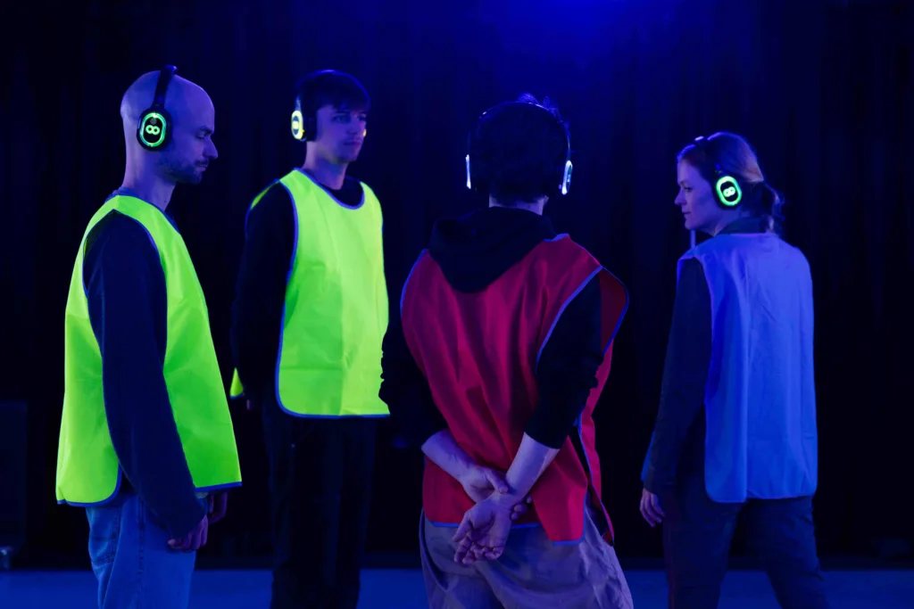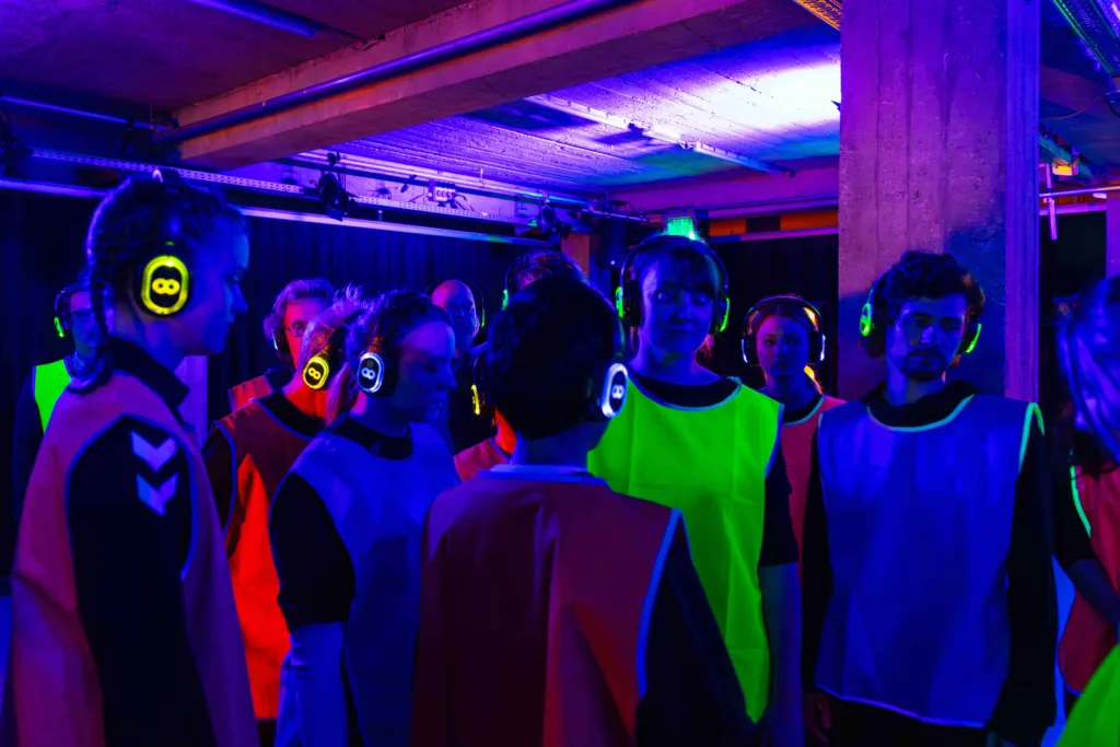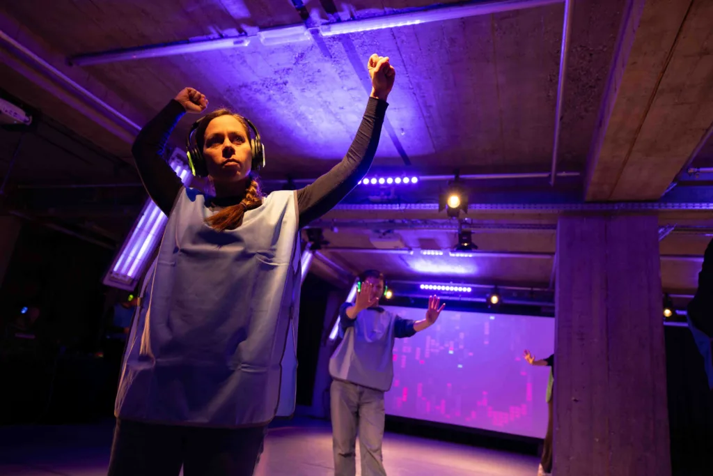 A production by VR Dance Club, co-produced by the Cologne Game Lab (TH Köln), TanzFaktur Köln, and the Koproduktionslabor Dortmund. Funded by the Cultural Office of the City of Cologne, the Ministry of Culture and Science of North Rhine-Westphalia, and the NRW Landesbüro Freie Darstellende Künste. Supported by the Children’s and Youth Theater (KJT) at Theater Dortmund and the Academy for Theater and Digitality Dortmund.